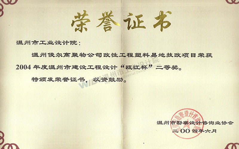 溫州俊爾高聚物公司改性工程塑料異地技改項目 甌江杯二等獎