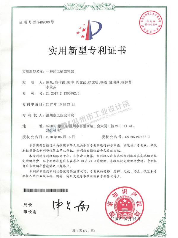 一種化工桶放料架證書