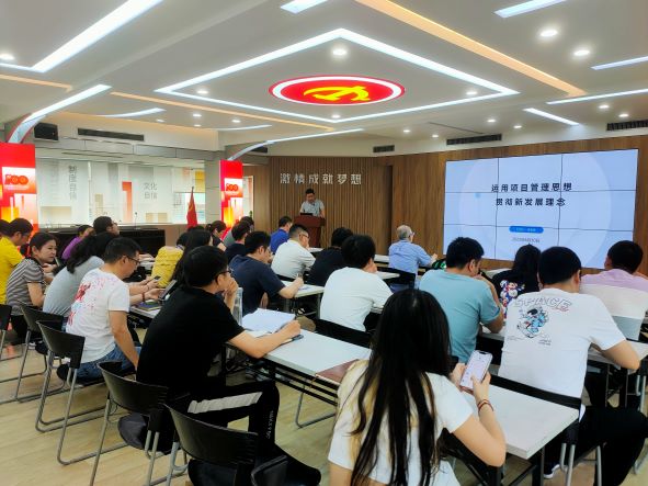 黨課內(nèi)容主要圍繞項(xiàng)目管理在科學(xué)層面和哲學(xué)層面的理解,新發(fā)展理念的內(nèi)容,以及如何運(yùn)用項(xiàng)目管理思想來貫徹新發(fā)展理念來闡述的。吳家強(qiáng)指出項(xiàng)目科學(xué)層面包括項(xiàng)目的相關(guān)概念、組織影響、項(xiàng)目生命周期、項(xiàng)目管理過程和知識(shí)領(lǐng)域,哲學(xué)層面是從項(xiàng)目管理思想延伸至如何構(gòu)建企業(yè)的管理和發(fā)展。要從戰(zhàn)略、運(yùn)營、人力資源的管理上,以及企業(yè)文化、數(shù)字化建設(shè)上做好工作去推動(dòng)企業(yè)的發(fā)展。有效的項(xiàng)目管理思想能提升企業(yè)的管理效率,因此要運(yùn)用好項(xiàng)目管理思想,以新發(fā)展理念引領(lǐng)企業(yè)的高質(zhì)量發(fā)展。